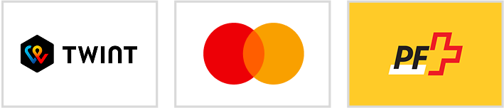 Debitkarten (CH), Kreditkarten, PostFinance Card oder PostFinance eFinance (nur Schweiz) sowie TWINT (nur Schweiz).
