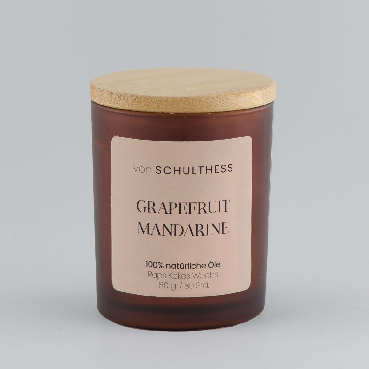 Duftkerzen im schlichten Schwarzglas mit Bambusdeckel mit 100% natürlichen Essenzen.
