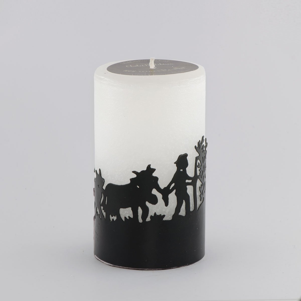 Die Scherenschnitt Sujets sind von der bekannten Scherenschnitt Künstlerin Esther Gerber. Die Kerzen stammen aus unserer Handproduktion in Utzenstorf und sind im klassischen Design von Schulthess Kerzenhandwerk gegossen.