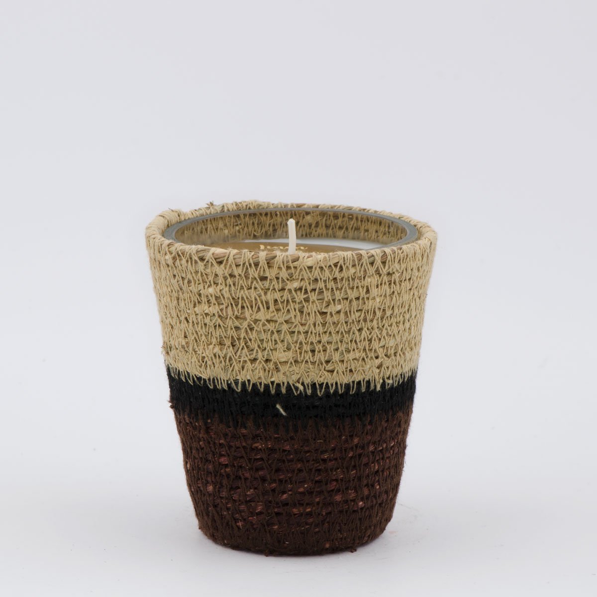 Die wunderschöne Glas Kollektion aus Seegras ist in drei verschiedenen Farben und Grössen erhältlich. Das Seegras-Körbchen kann nach Abbrand der Kerze im separaten Glas
